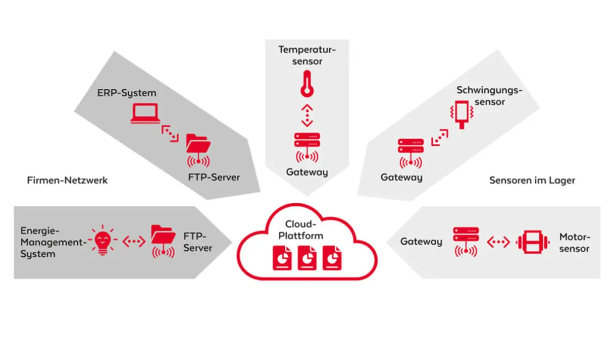 Um das eigene IIoT-Know-how zu erweitern und ein Verständnis für die Kundenbedürfnisse zu entwickeln, wurde bereits im September 2019 mit dem Einbau verschiedener Komponenten (Gateway und Sensoren) im automatischen Kleinteilelager begonnen. Die Sensoren sammeln verschiedene Daten, die dann über das Gateway in eine Software-Einheit (Cloud-Plattform) übertragen werden. Erfasst werden in diesem Projekt unter anderem Temperatur-, Schwingungs- und Motorsensordaten.