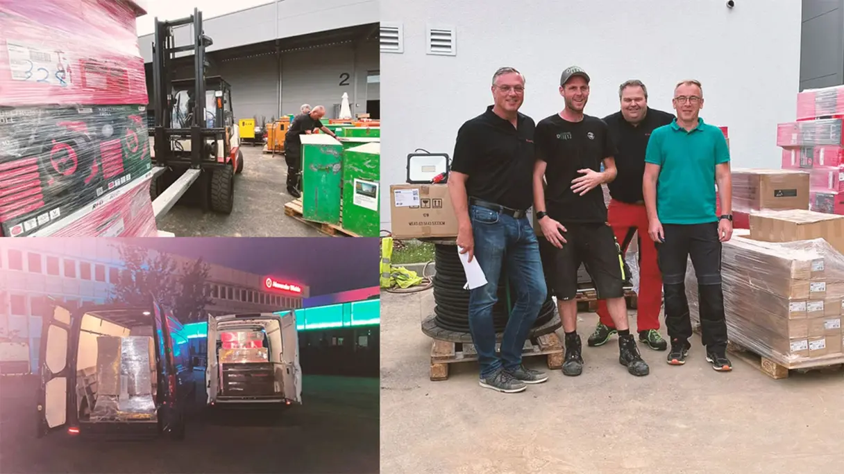 "Die Anfrage dazu kam gleich von mehreren Seiten“, berichtet Vertriebsleiter Harald Saulewicz, der die Aktion ins Rollen gebracht hat. Sowohl Kunden als auch Außendienstler von Alexander Bürkle hätten nachgefragt, ob sich das Unternehmen engagieren werde. Den Ausschlag gab schließlich ein besonders engagierter Kunde: die Elektro Althaus GmbH, deren Inhaber Matthias Rossel sich mit seinen Mitarbeitern an den Wochenenden freiwillig engagiert, um für die vom Hochwasser betroffenen Menschen im Landkreis Ahrweiler wieder eine Elektro-Infrastruktur aufzubauen.